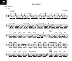 full drum transcription, drum sheet music chart, or drum score for